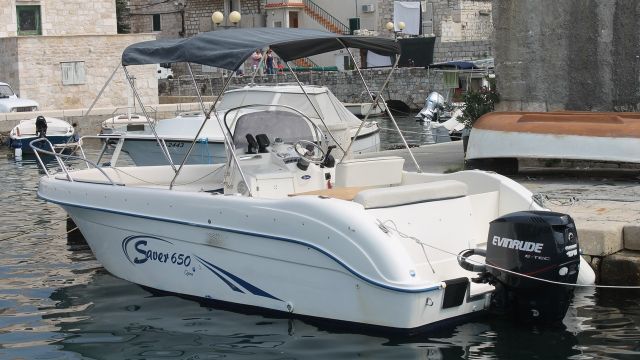 The Saver 650 is an open speedboat, ideal for one-day excursions. It is wide and spacious, with plenty of space for enjoyment, you can use this space comfortably for eating or sunbathing. The boat also has a small cabin with a toilet and it is equipped with a powerful engine that will drive at a maximum speed with a maximum number of people.