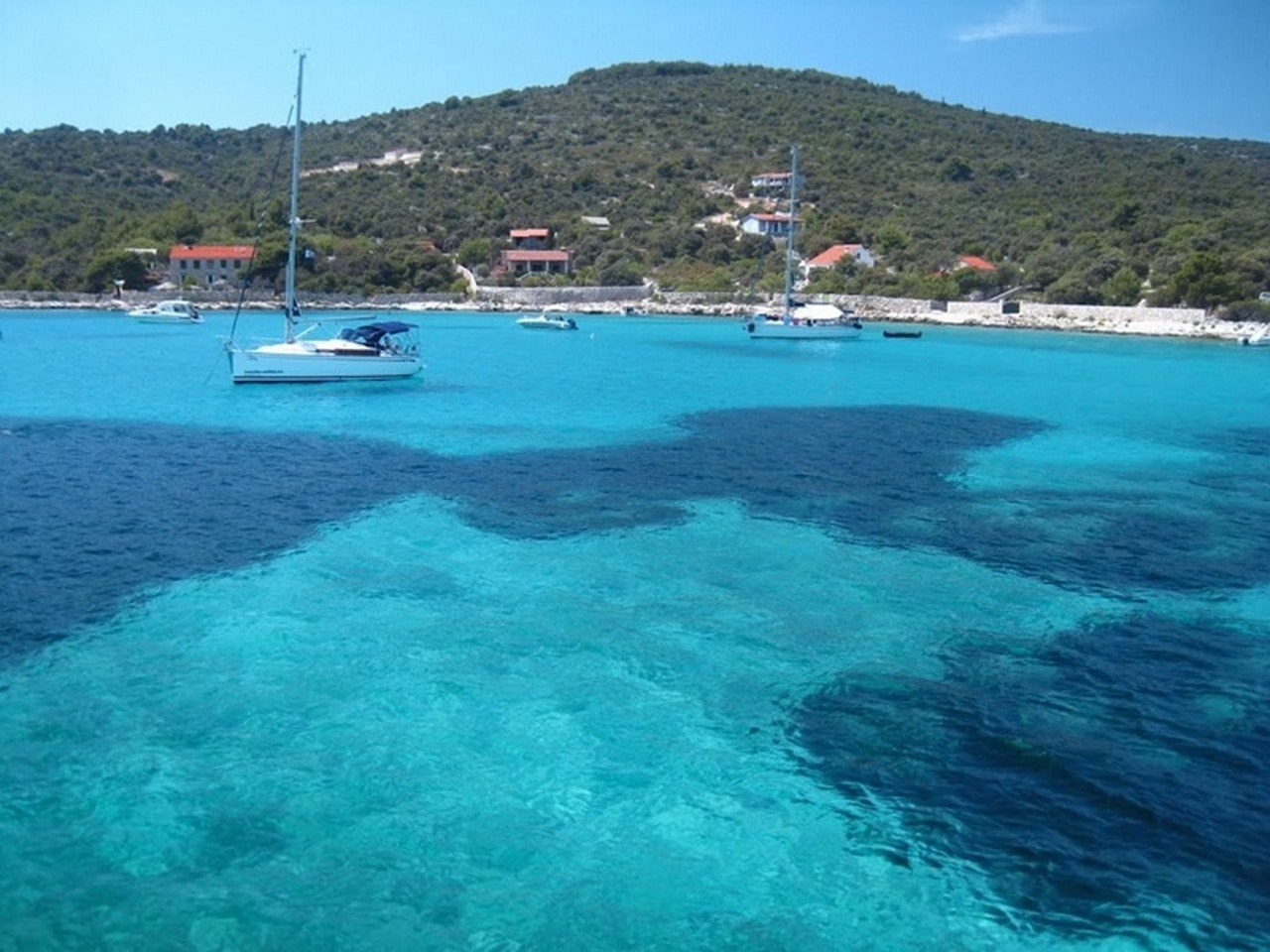 After Maslinica we go to Blue lagoon on island Veli Drvenik. The Blue Lagoon is situated on the east side of the island Drvenik Veli next to the Krknjaši islands. It’s a beautifull bay relatively close to Split and the blue cristaly clear sea attracts many tourists for swiming, snorkeling and other water activities. Sea bed is sand so all together create beautiful landscape. We are staying on blue lagoon for a 1 hour.